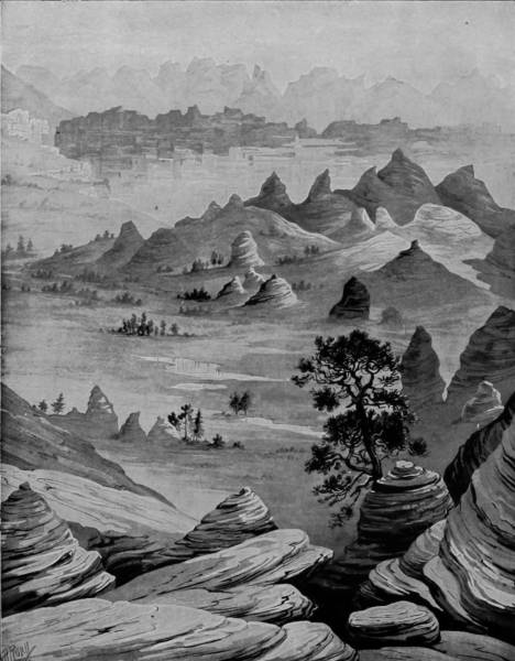 How the photographic views herein reproduced were obtained may be thus briefly told, and is well worthy the relation: This book was conceived more than half a dozen years ago, but a press of other engagements caused a postponement 12of any effort at its preparation until the spring of 1890, when the publishers engaged a corps of artists, consisting of three of the best out-door photographers in the country. A passenger car was next chartered, which was remodeled so as to provide comfortable sleeping quarters for the men in one end, a kitchen in the other, while the center was fitted up as an operating-room for taking, developing and finishing pictures. Three cameras, of as many sizes, were also provided, with three thousand prepared plates, and a great quantity of paraphernalia which might be found useful for the expedition.