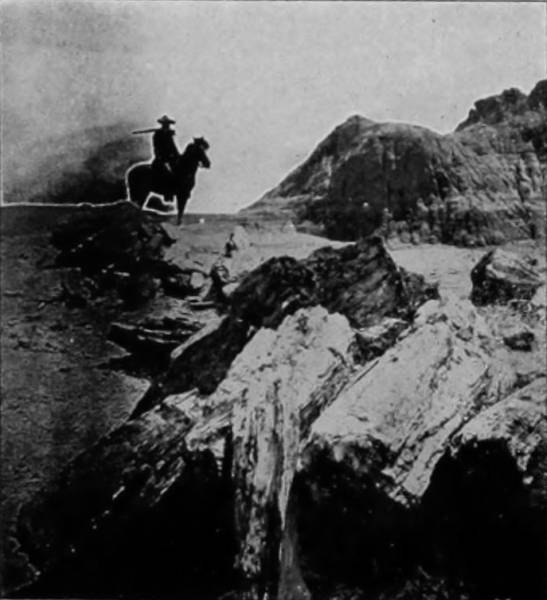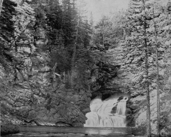 Some weeks were spent traveling off the line of road among the ruined villages of the Cliff-Dwellers, and in photographing the more rugged scenery of the Rio Grande River. Then we continued our journey westward over the Atlantic and Pacific and the Southern Pacific Railroads to California, where nearly three months were spent among the towns, Yosemite Valley, Big Trees and mountains of that summer-land. On the appearance of spring we traveled north by way of the California and Oregon Railroad, still making side trips by stage-coach and wagon, to Portland, from which point excursions were made up the Columbia and Willamette Rivers. At Victoria, British Columbia, we took steamer for Alaska, and 13returning we passed through the Cascade Range over the Northern Pacific, working our way back east. But we continued to make detours a long way off the main line of road, thus visiting the Falls of the Missouri, the Black Hills, the Custer battle-field, Devil’s Tower, and Yellowstone National Park, in which latter wonderland we spent two weeks photographing its scenery and extraordinary formations.