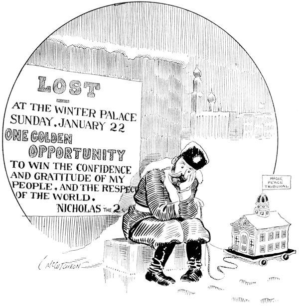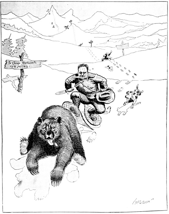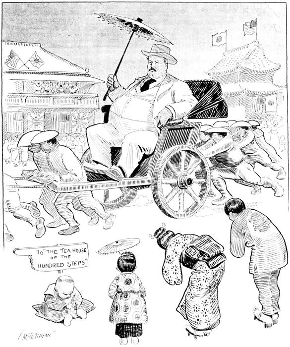 These cartoons have been reprinted in the hope that they may have a permanent interest because of the great historical importance of the period they encompass. In the last two or three years the world has moved with more than its usual alacrity. It has been a history-making epoch. There has been a war that WAS a war. There have been disasters almost without parallel; and we have weathered as pleasant a presidential campaign as the oldest inhabitant can remember. Mr. Roosevelt has been insured to us for another four years and his activities in peace and in war and in sports have been a source of unending inspiration to the cartoonist. In addition, the nation has achieved merited glory because of the great exposition held in St. Louis, and last, but not least, Missouri has taken it into her head to go Republican.