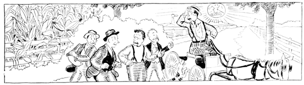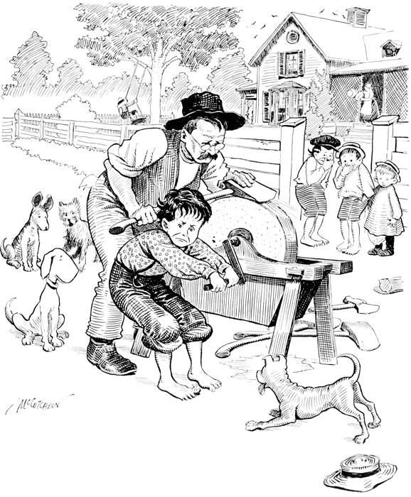 “Just look how much I saved for the Fourth. Ma give me a dime ’n I sold a copper boiler to Johnson Bros. for twelve cents. I got sixteen cents for picking cherries for Mrs. Oliver, ’n a nickel for carrying a note for Mr. Hornbeck, ’n fi’ cents I got for picking potato bugs for Mrs. Oliver, ’n ten cents for finding Mr. Griswold’s cow. And I’m gunna spend it all for shootin’ crackers and fire ’em all off just for you.”