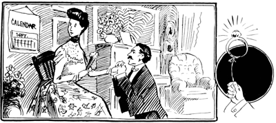 “Will you be mine, Felicia?” “For how long, Albert?” “For fifteen years, dearest.” “No, but I will for ten years.” “Can’t you make it twelve?” “No; ten is the limit.” “All right. Here’s the ring. Take good care of it for I may need it again.”