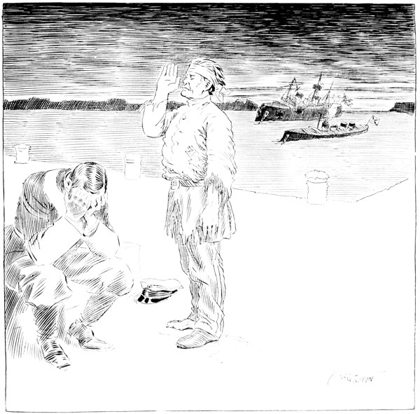 “Come, my hearties,” he cried, “step lively. We must get away.”