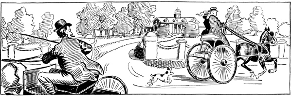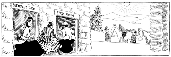 Suggestion II—Another delightful vacation which we earnestly recommend would be to spend your two weeks’ holiday in Scotland. Here one may rent a beautiful estate, abundantly stocked with game—croquet, golf, bridge, etc.,—and with plenty of good riding-horses, and at least one mail coach for coaching parties, the hours may be most delightfully beguiled. You could give frequent entertainments, such as jolly little tours in the highlands, etc., and it would be well to have the castle the scene of many congenial house parties. Occasionally you should give lawn fêtes to which the peasants and tenants from the neighboring countryside may be invited.