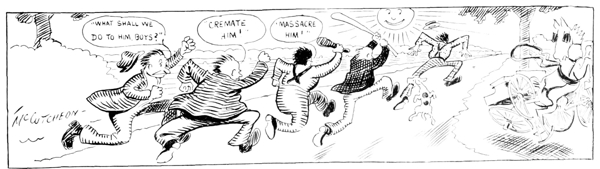 The Chief of the Indian Fighters—“Don’t cry, they’re not real Indians—they’re only cornstalks. We’re just pertending they’re Indians. Come on, you’ll never make an Indian fighter if you act this away.”