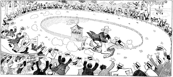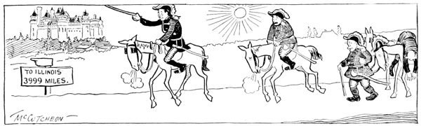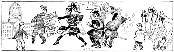 “Home again!” shouted the governor in joyous exultation, and again putting spurs to his gallant steed he galloped across the Alleghanies, cleared the Ohio at a bound and soon saw the towering dome of his beloved state-house in the distance. Large throngs of office-holders heralded his coming with glad shouts. Ten minutes later he was deep in a consultation regarding his chances of heading off the Deneen boom.