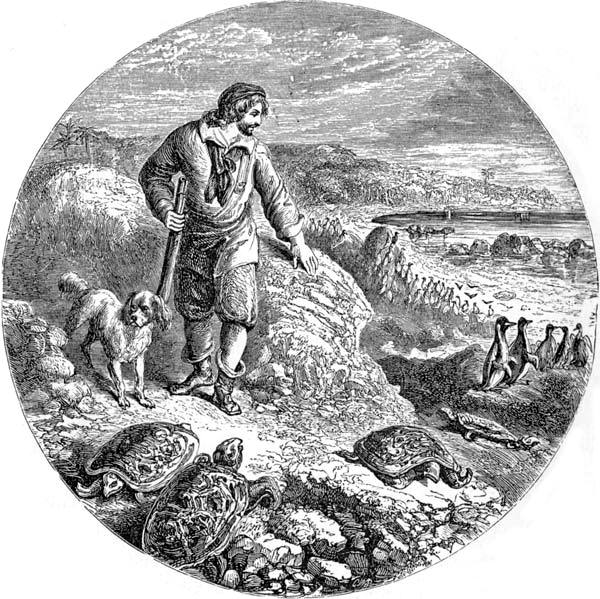 | Gefährliche Seereise. – In die See hinausgetrieben. – Sehnsuchtsvolle Betrachtungen. – Die beiden Strömungen und glückliche Landung. – Des Papageis Ruf. – Robinsons »Familie«. – Ziegenfang und Ziegenpark. – Schneiderkünste. – Neue Beobachtungen. – Rückblicke. | ||