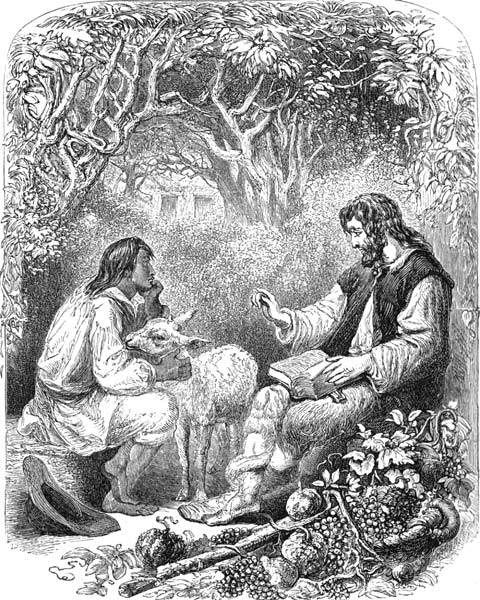 | Robinson säet Getreide. – Korbflechterei. – Töpferarbeiten. – Weitere Entdeckungsreisen auf der Insel. – Tierreicher Küstenstrich. – Robinson bringt einen Papagei sowie eine Ziege nach Hause. – Tröstliche Gedanken über Sonst und Jetzt. – Tageseinteilung. – Verheerung des Getreidefeldes. – Exekution an den Kornplünderern. – Kleine Ernte. | ||