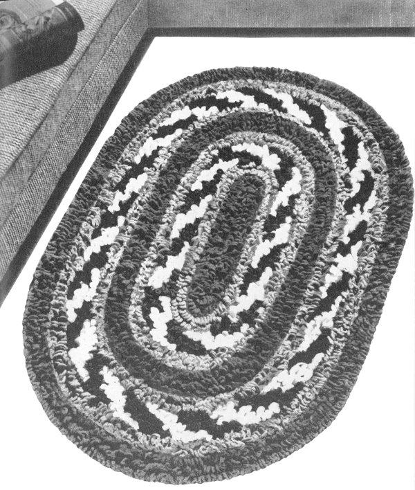 HOOKED RUG—With another method of hooking, the yarn is held underneath the frame with one hand and pulled up to the desired height (usually about ½ inch) with a hook held in the other hand.