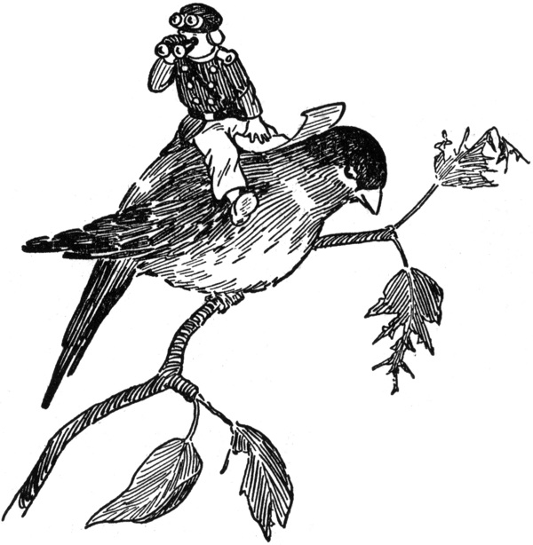 One day the Teenie Weenies were surprised to hear a bird shout to them from a bush over their heads and when they looked up they saw it was Tilly Titter, the English Sparrow—an old and trusted friend.