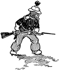 One evening a wicked old weasel came prowling around the camp. The little folks were quite alarmed about it, for the old fellow hung around for a long time. They could see his wicked green eyes shining in the light from the camp fire and when the General asked him what he wanted, he never answered. At last the General told several of the soldiers to fire off their rifles.