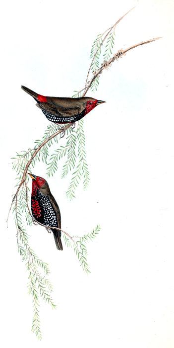For two beautiful specimens of this entirely new Finch I am indebted to E. Dring, Esq., of the Beagle, who procured them on the north-west coast of Australia: no notes of their habits or economy having been forwarded with the specimens, I am unable to give any particulars respecting them.