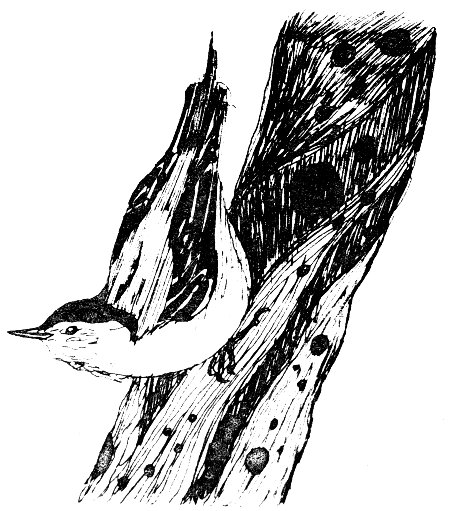This dead, old hawthorne has served as a home for many animals. Over a period of years, the tree has rotted and has been occupied by fungi, carpenter ants and beetles. This drew hungry woodpeckers which have tapped holes in the tree in search of food. Gradually, the tree has been hollowed out. Birds and chipmunks probably have used the tree for hiding or nesting.