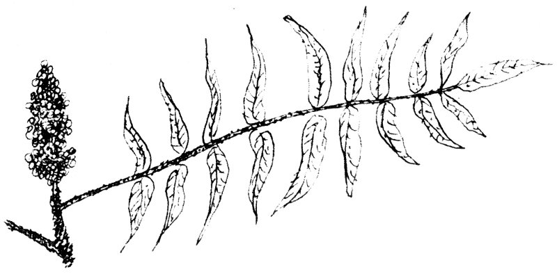 The sumac provides a source of shelter and food for many animals here. The staghorn sumac’s umbrella-like canopy furnishes shade to birds in the hot days of summer. It serves as a refuge during rain storms. Birds can easily disappear in the maze of leaves and branches in time of danger. The pink berry-like clusters of blossoms offer food for birds. Later, the fruits become dry and they may persist for a year or so providing an emergency food for squirrels and birds. The deer and cottontail rabbit find the twigs and bark a most acceptable meal during the winter. In former years, the sumac was often used for 14 tanning fine leathers and as a dye because of high content of tannic acid.