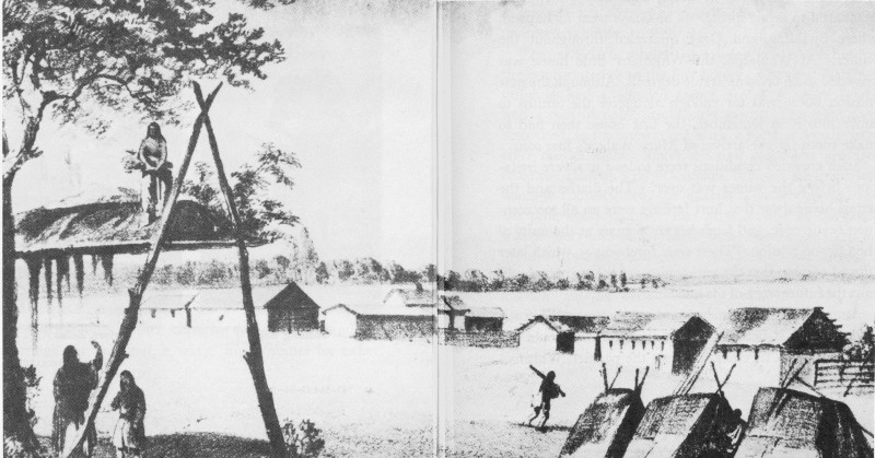 DeSmet founded Sacred Heart mission among the Coeur d’Alene Indians in 1842. From Thwaites, Early Western Travels.