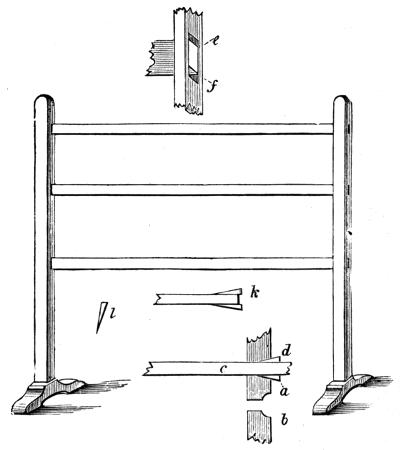 As this book was originally published in London, where the facilities for getting many kinds of small tools are better than in this country, perhaps a little advice as to the best way of getting such tools as may be required will not be out of place. In most of the large Hardware Stores, carpenters’ tools will be found, put up in chests, at prices varying from five to fifty dollars or more; but we should not advise the amateur to buy any of these, as the quality of the tools is not always reliable, and as they are usually fitted up to make as much show as possible for the money, they contain many tools which are of very little use. The best way is to make a list of the tools required, and select them for yourself. The most important thing is to have the Cutting tools of good quality. We give below the names of some of the best makers of tools; if you purchase any of these, you may be sure of the quality.
