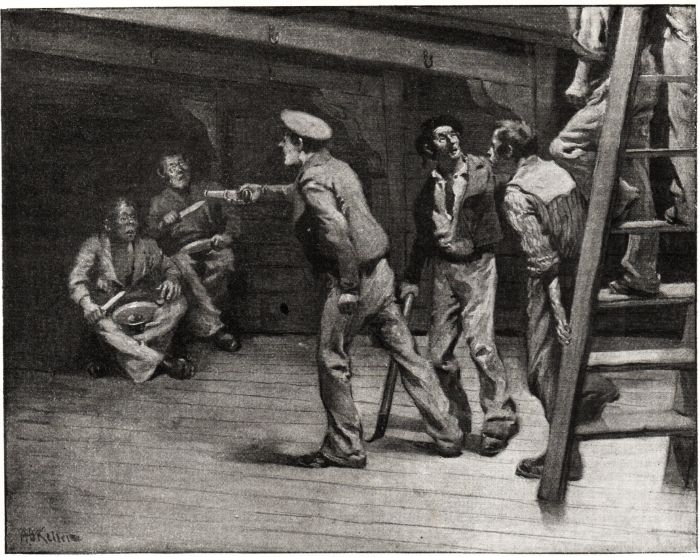 I took the glass from him without answering, for I saw no humor in the situation. A boat put off from the cutter and brought back two of the men from shore, and now, hidden behind a rock, we watched the proceedings in turn. The idea of getting water was apparently abandoned.