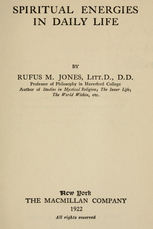 I wish to thank the editor of The Atlantic Monthly for his permission to print in this volume the chapter entitled “The Mystic’s Experience of God,” also the editors of The Journal of Religion for their permission to use the article on “Psychology and the Spiritual Life.” Some of the shorter essays have been printed in The (London) Friend and in The Homiletic Review. Kind permission has been granted for their reproduction.