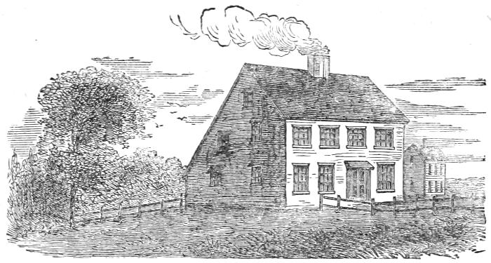 He was born in Salem, a town about fourteen miles from Boston, the capital city of our State of Massachusetts. His birthday was March 26, 1773. His father was at first a cooper, and afterwards a shipmaster. He and his wife were exceedingly poor, and they had many children. Nat was the fourth child. He had two sisters and three brothers. When he was about two and a half years old, his parents removed to a very small wooden house in Danvers, about three miles from Salem; and here the boy attended school for the first time, and began to show those generous feelings, and that love of learning, which he displayed so much in after-life. A few years ago the old school-house in which he learned to spell and read remained entire. It was an old-fashioned building, with a long, slanting roof, which, at the back of the house, nearly reached the ground. Its single chimney, with many curious and pretty corners, then rose in the middle of the roof, as it had for ninety years. Around the dwelling is a grass plat, upon which he used, when a[13] child like yourselves, to play with his schoolmates. It was planted with shrubs, such as the farmers most need. The house in which he lived still stands nearly opposite that in which the school was kept. This house formerly had but two rooms in it, and all its furniture was of the simplest kind.