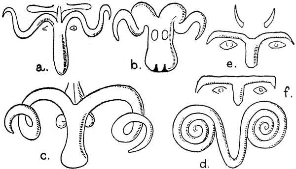 | 14. | Fanciful Designs by Mykenæan Artists, showing Change of the Cuttlefish (Octopus or "Poulpe") into a Bull's Head and other Shapes |