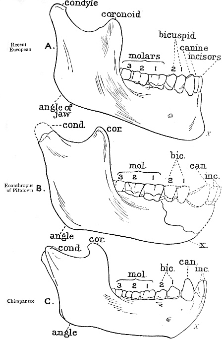 In the Index for Piltdown, skull and jaw, 289 was added as it was missing in the original.