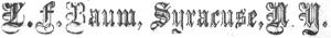 L. F. BAUM, Agent, Syracuse, N. Y.