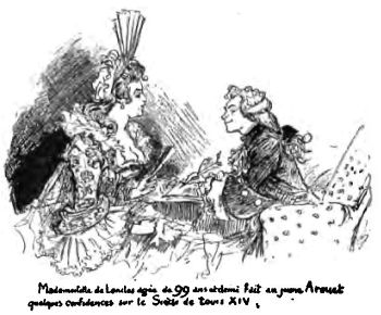 Sylvie a fait sans doute un peu de toilette pour le souper, car M. de Coudray, revenu près d'elle, se penche au-dessus de son fauteuil et lui souligne ces vers de l'Almanach: