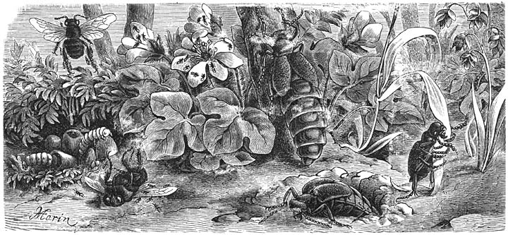 In het water en op het land, op planten en op dieren, kruipend over den grond of vliegend in de lucht, overal waar het voor een dier mogelijk is te leven, worden Insecten gevonden. Het aantal soorten neemt af, naarmate men de polen nadert of in de met sneeuw bedekte gebergten grootere hoogten bereikt; op zeer hooge breedten ontbreken zij geheel; in de Zwitsersche Alpen werden nog op 2812 M. boven de oppervlakte der zee Insecten aangetroffen. Hoe warmer de luchtstreek, des te sterker zijn zij er vertegenwoordigd, des te grooter is hun verscheidenheid, des te wonderbaarlijker hun vorm en des te prachtiger hun kleur.