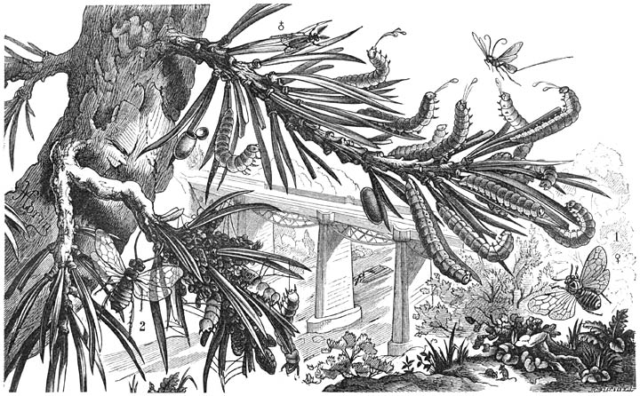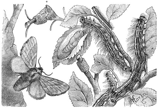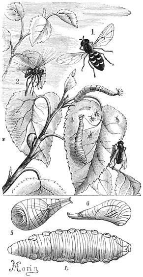 De larven der Insecten met volkomen gedaantewisseling hebben voor ’t meerendeel een langwerpig, door gelijksoortige ringen begrensd lichaam, maar verdienen daarom den naam van “Wormen” niet, dien men hun dikwijls geeft. Vooreerst zijn er larven met en larven zonder pooten. De eerstgenoemde hebben dan geregeld aan de drie eerste ringen na den kop, aan het toekomstige borststuk, 3 paar gelede, in 1 of 2 klauwen eindigende ledematen, die men borstpooten of ware pooten noemt. Bovendien kunnen aan eenige of aan nagenoeg alle ringen van de volgende lichaamsafdeeling ook nog achterlijfspooten of valsche pooten voorkomen; deze zijn nooit geleed, maar eenvoudig vleezige uitstulpingen van de huid. Zulke larven heeten rupsen. Haar hoornachtig harde kop is met bijtende monddeelen voorzien, zelfs dan, wanneer het geslachtsrijpe dier een zuiger bezit. Zeer vele larven hebben in hun lichaam twee spinklieren, ter bereiding van eene taaie stof, welke tot draden kan worden uitgetrokken, die aan de lucht verharden. Zij dient meer bepaaldelijk op zeer jeugdigen leeftijd maar ook later tot beveiliging, in tijden van nood als middel om te ontvluchten; vooral echter komt zij te pas bij den overgang uit den toestand van larve in dien van pop, daar vele larven een spinsel (cocon) vervaardigen waarbinnen zij zich verpoppen. Zooals bekend is, levert het spinsel van sommige rupsen de kostbare zijde.