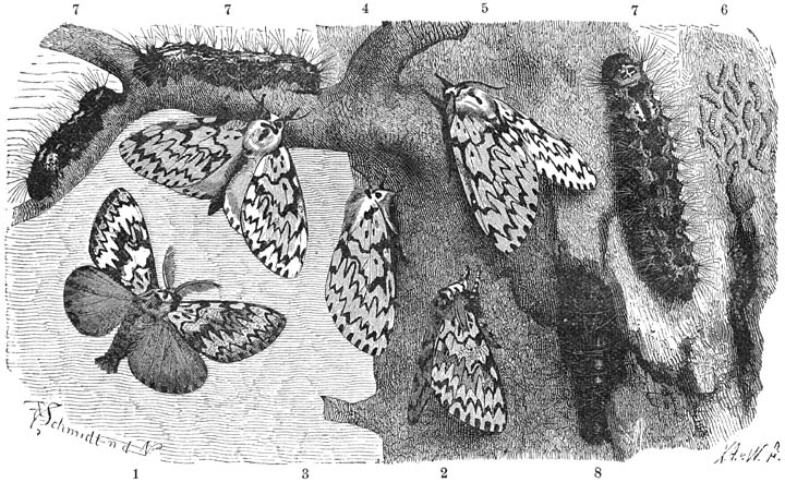 Het is noodig bij deze gelegenheid de aandacht te vestigen op een uitdrukking, die in het vervolg herhaaldelijk zal voorkomen. Men spreekt n.l. van een enkelvoudige generatie van een Insect, wanneer het in één jaar zijne ontwikkelingsstadiën slechts éénmaal doorloopt, van twee, van drie generatiën, wanneer dit in den genoemden tijd twee-, driemaal geschiedt; wanneer er twee generaties zijn, onderscheidt men ze door de namen zomer- en wintergeneratie. Deze omvat altijd een langduriger tijdperk dan gene, omdat het Insect gedurende den winter op den eenen of anderen zijner ontwikkelingstrappen blijft rusten. Bij deze aanduidingswijze denkt men niet aan het burgerlijke jaar, maar aan een periode van 12 maanden, die voor verschillende soorten op verschillende tijdstippen kan aanvangen.