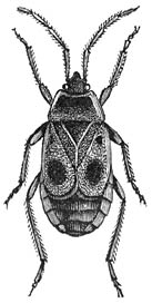Het is ons reeds gebleken, dat de levenswijze der Loopkevers veel verscheidenheid aanbiedt, daar wij vliegende, klimmende en gravende soorten hebben leeren kennen. Deze gebruiken uitsluitend dierlijk voedsel; zij hebben echter ook planteneters onder hare verwanten. Een sterk gewelfd, dwars gericht, rechthoekig halsschild, dat nauw aansluit tegen de van voren even breede en eveneens sterk gewelfde dekschilden zijn de oorzaken van den gedrongen, minder sierlijken lichaamsvorm, waaraan het geslacht Zabrus kenbaar is. De bekende soorten bewonen hoofdzakelijk de landen om de Middellandsche Zee en de Azoren, eenige weinige vindt men in Midden-Europa; slechts van één soort strekt het gebied zich uit van Portugal tot Pruisen en van Cyprus tot Zweden. Deze zoo ver verbreide soort is de Bultige Loopkever of Graanloopkever (Zabrus gibbus), die zich van zeer ongunstige zijde heeft doen kennen in streken, waar hij zich in groote menigte vertoonde. Niet slechts de larven, maar ook de volwassen Insecten kunnen in dit geval groote schade aanrichten. Van hun vorm en grootte geeft de afbeelding een voorstelling; tot aanvulling diene, dat de Kever van boven zwart of zwartbruin, op de platte onderzijde en aan de pooten lichter, n.l. pekbruin van kleur is; het halsschild heeft rechthoekige achterhoeken en is aan de basis dicht en fijn gestippeld; de dekschilden zijn van diepe voren voorzien en hier gestippeld; de vleugels zijn goed ontwikkeld. De Bultige Loopkever bewoont de rogge-, tarwe- en gerstakkers of hun omgeving gedurende den tijd waarin de graanvruchten nog een melkachtigen inhoud hebben. In den zomer heeft de laatste gedaantewisseling plaats. Zoodra de zon onder de kim gedaald is, verlaat de Kever zijn schuilplaats, klautert langs een halm der genoemde graansoorten omhoog, tot hij de aar bereikt heeft, zet zich schrap, zoodra hij de korrels nog week vindt, schuift met de voorpooten de kroonkafjes vaneen en beknabbelt de korrel, van boven beginnend. Bij deze bezigheid toont hij zulk een grooten ijver, dat zoomin een windstoot als een andere onverwachte beweging van den halm in staat is hem van zijn verheven zitplaats naar beneden te doen tuimelen. Men vindt de aren meestal van onderen tot boven beknaagd en verropt; in de eene zijn meer, in de andere minder korrels aangevreten. Het wijfje legt kort daarna hoopjes eieren, waarschijnlijk op korten afstand van de oppervlakte, op grassen die aan den rand van den akker en in de greppels groeien.
