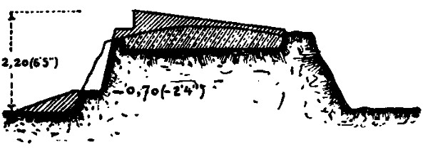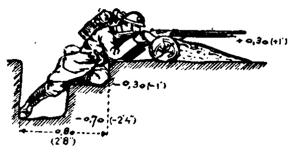 4. The fire trench is so narrow that lateral communication along it is effected only with difficulty. In order to provide a passageway a communication or supervision trench is provided a few yards in rear of the fire trench. Passageways lead from this communication trench to the fire trench and to the dugouts located along it.