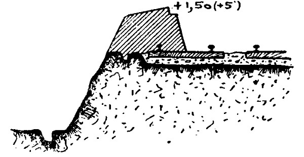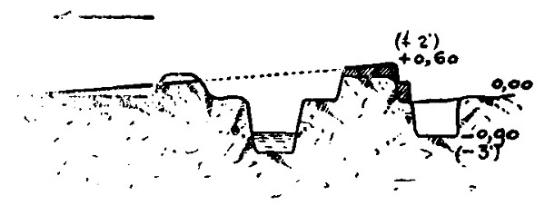 1. In front of the position and at a variable distance from the first line fire trench there is a line of wire entanglements. (See Obstacles, p. 4.)
