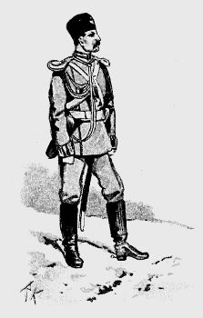 The British Cavalry is the smartest in the world. In the Cavalry of nearly all foreign armies, Germany for instance, and France, the horses are trained to a degree that is unheard of in the English arm; thus their men require but little skill in riding, and may be described as good soldiers on horseback. Ours, on the contrary, are born horsemen, and do not need to have their horses so thoroughly trained. The consequence is that when our men find themselves in a predicament not provided for by the Regulations, their natural qualities stand them in good stead, and by their brilliant riding and dash they turn to good account a situation which might otherwise offer serious difficulties. The British Cavalry is divided into Heavy, Medium, and Light, according to the size and weight of the men. The Household Cavalry, 1st and 2nd Dragoons, are heavy, and are never quartered abroad, the Hussars are light, and all the rest are medium Cavalry.