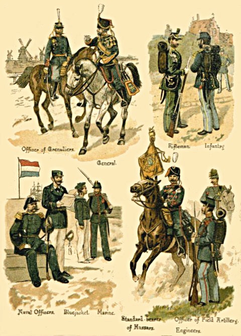 1. The Regular Army consists of Cavalry, Artillery, Engineers, and Infantry; besides these are the non-combatant branches, [Pg 5] consisting of the Army Service Corps, the Ordnance Store Corps, the Medical Staff Corps, the Pay, Medical, Chaplains, and Veterinary Departments, and a few more.