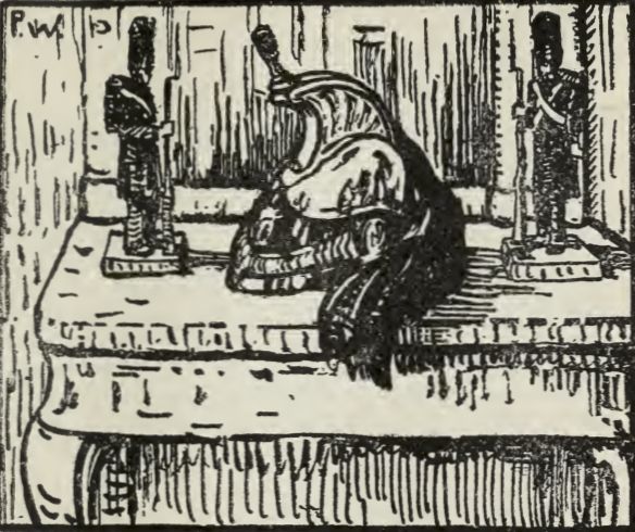 —Wos? Silence?... C'est ici la République Française... Liberté, Egalité... et si M. le Grand Lama n'est pas content, il a droit à un billet pour l'autre côté du Rhin et à cinquante kilos de bagages... Ce sera cinquante de plus qu'il n'en avait en arrivant.