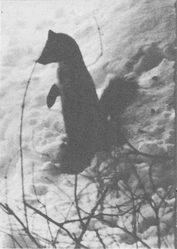 Like the ptarmigan and the northern weasel, the snowshoe rabbit, or varying hare, each autumn changes from a dominantly brown summer coat to a white winter ensemble. (In Washington where snow is scarce in its habitat, the snowshoe rabbit remains brown the year round.) His coat color blends at all seasons with his background, so all he need do to be fairly sure of escaping visual detection is to have confidence in his camouflage and sit motionless. The fur is so long, thick, and warm that he can sit all day in fifty below zero weather without freezing. His large hind legs are equipped with snowshoe feet, an obvious advantage in snow country.