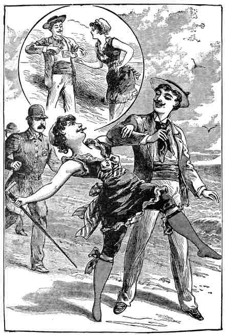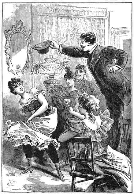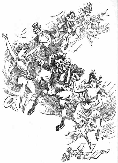 There are cases where details are uninteresting, and while the time from luncheon to near the hour of midnight seemed to the honeymooners one wild carouse yet it was really nothing to those who are familiar with the ways of the world. They had sampled everything within reason from soda to hock, and the happy Freehold boy with the silk lid was willing to walk on his hands if anyone had dared him. He had told everyone284 he met all he knew and all he ever expected to know. As for the little lady who had been toasted many times as the “blushing bride,” she had suddenly developed sporting proclivities of a rare character, and she squeezed the hands of both of her hosts with equal impartiality.