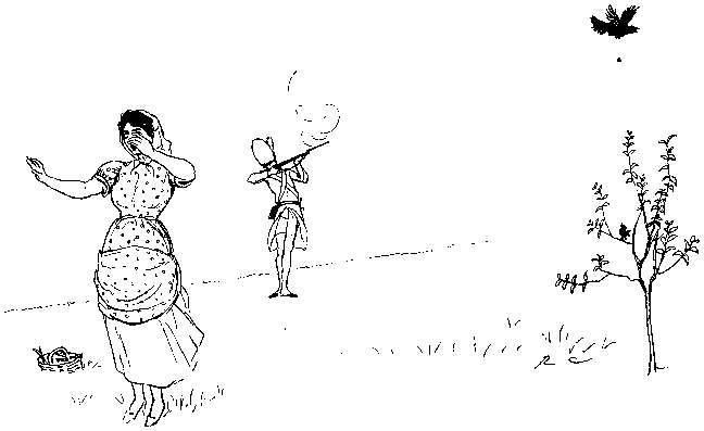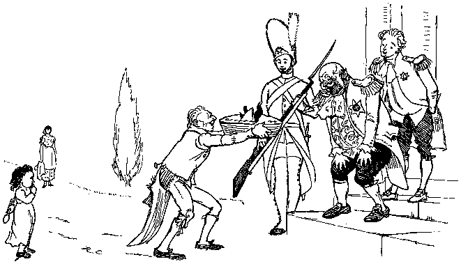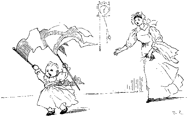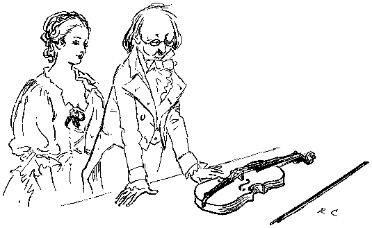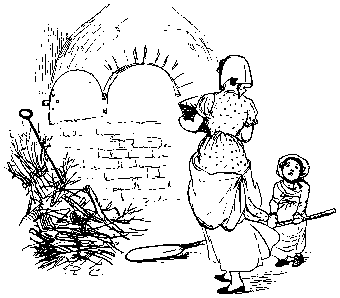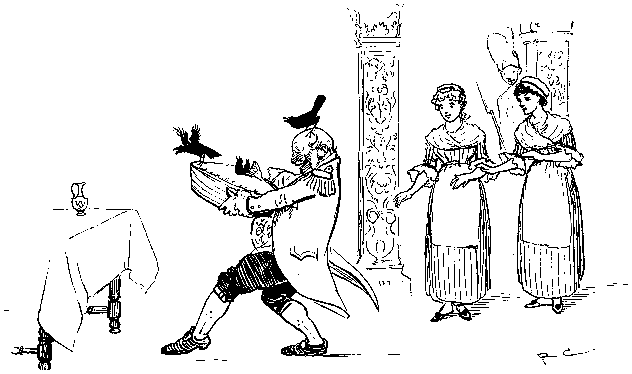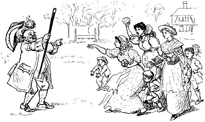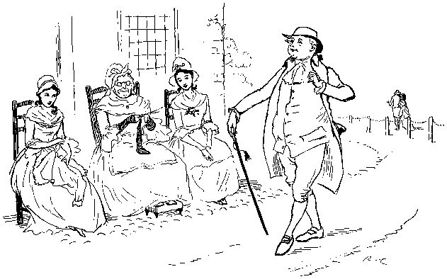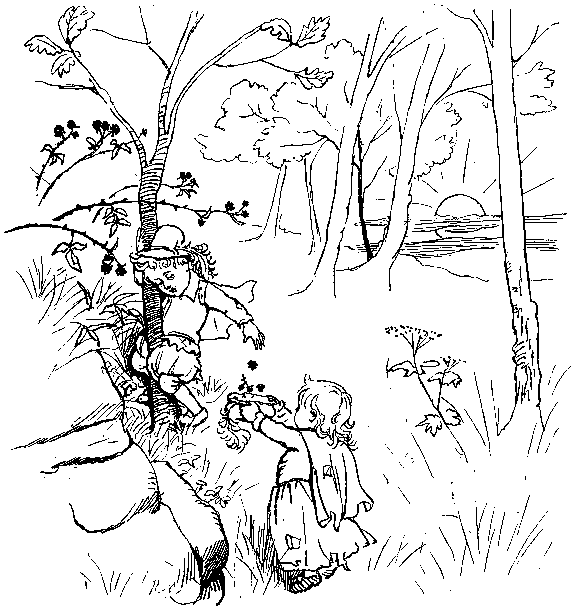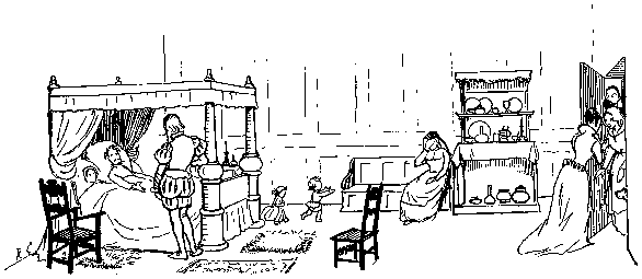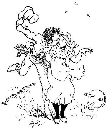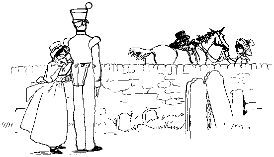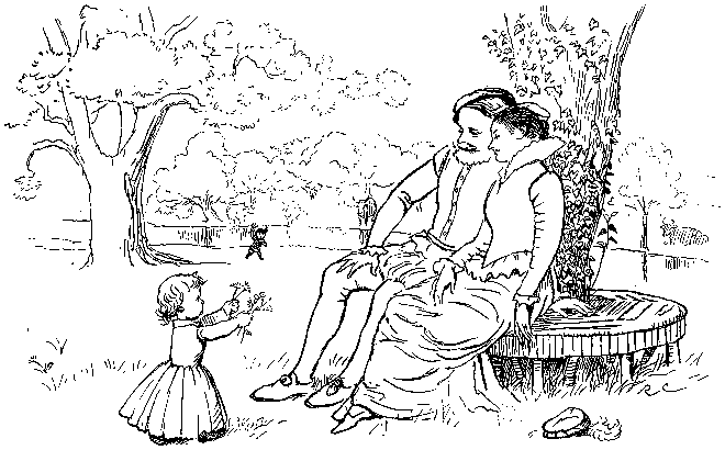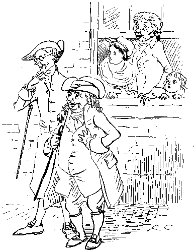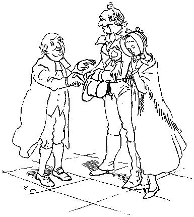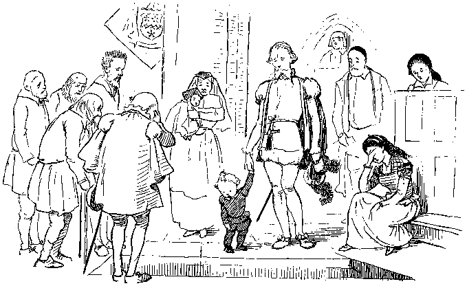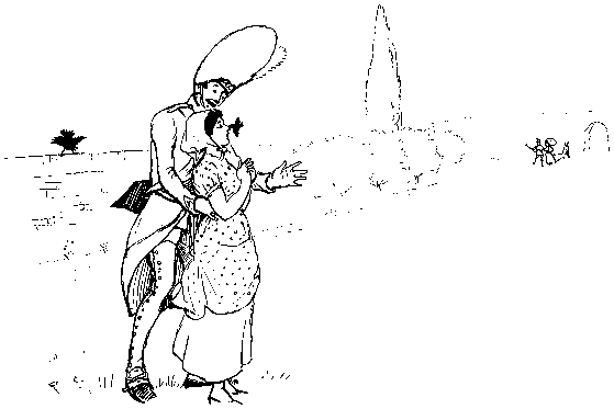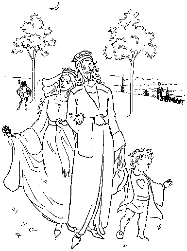 With his Daughter behind him, so rosy and fair;