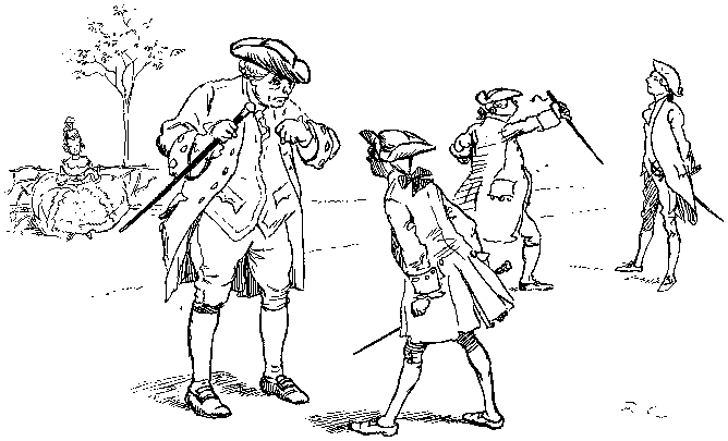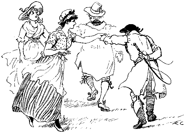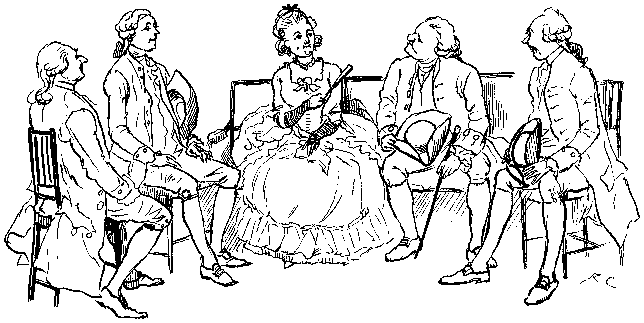 By twenty beaux and more;