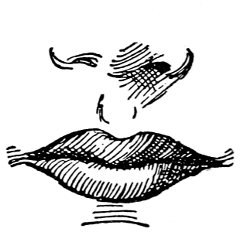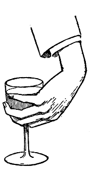 3rd. The right hand is clasped, the thumb and little finger extended. The former is placed against the lips, whilst the latter touches the breast.