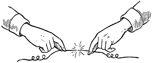 In this latter case a very good “shake” can be obtained by pressing the thumb firmly against the back of the hand, as shown in Fig. 1. This will arouse no suspicion in anybody ignorant of the meaning, though, if reciprocated, it forms an excellent sign of recognition.