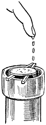The following method seems to be as good as any, and has the advantage of being easily contrived. Drive a pin firmly into the heads[543] of one set of men (say the black), and either leave plain, or make a little knob of sealing-wax around the pinhead. This will render the different colors perfectly distinguishable to the blind player.