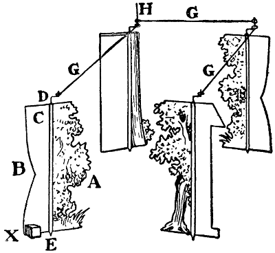 It is, of course, possible to act without a stage proper at all, especially if you happen to live in a house that boasts a double drawing-room with folding doors, in which case a curtain would also be a superfluity, for the doors could be closed and thrown open when the audience are in their places, though if a curtain should be deemed necessary it would be an easy matter to fix a rod from door to door.