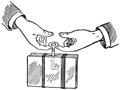One party called A says the first syllable, and the other person B repeats the second, then saying the whole word. Supposing the pass-word chosen be Oxford, A would make some remark introducing the word Ox, whilst B, replying in a similar vein, would mention the last syllable “ford” and conclude by repeating the whole word. With this system it is almost impossible for an outsider to palm himself off as one of the elect, even if he has become acquainted with all the signs of the society.