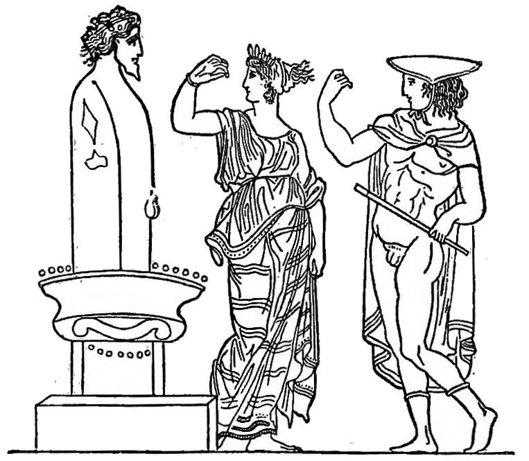 | 9. | Costume of Ephebos (Adoration of a Hermes). Vase-painting from Schreiber. Kulturhistorischer Atlas, Altertum. Plate 14, 3 | 18 |