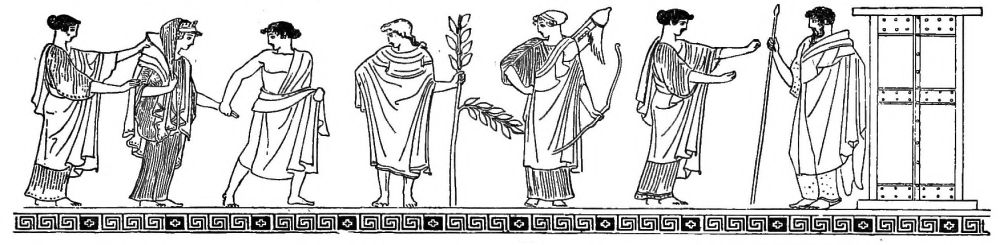 | 4. | Costumes of the Fifth Century B.C. (Rape of Helen.) Vase-painting by Hiero. From Gerhard. Trinkschalen und Gefäsze. Plates 11 and 12 | 10 |