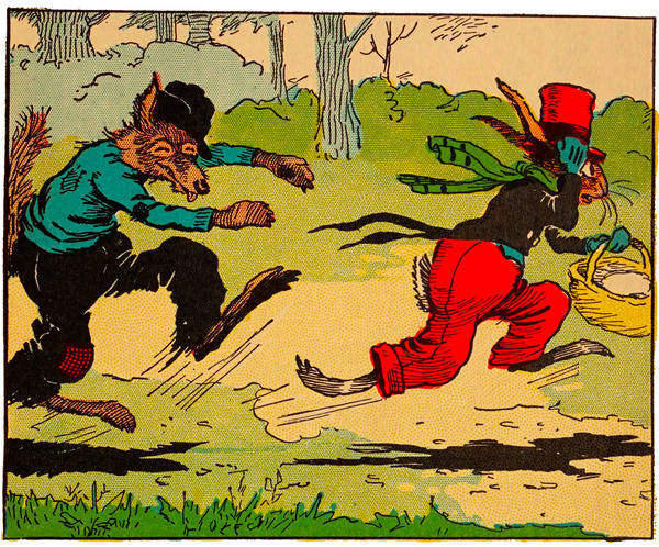 8. Uncle Wiggily hopped as he had never hopped before, but the Wolf could run the faster, and soon the bad animal caught the bunny. “Ha! Ha!” laughed the Wolf, as he held the bunny by one paw, “you talk about Thanksgiving! What have you to be thankful for? You laughed when Percival arrested my friend the Fox! Now it’s my turn to laugh.” Uncle Wiggily said he had one thing to be thankful for.