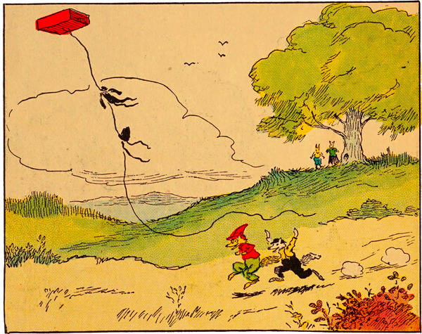 1. Once upon a time, when it was almost summer, Uncle Wiggily went out for a walk. He saw some of the animal boys flying their kite. “Why don’t you make a bigger kite, and one without a tail?” asked the bunny gentleman. “You can’t make kites any bigger than this,” said Jackie Bow Wow. “And if you didn’t have a tail they wouldn’t go up,” added Sammie the rabbit. “Ha! I’ll show you!” said Uncle Wiggily.