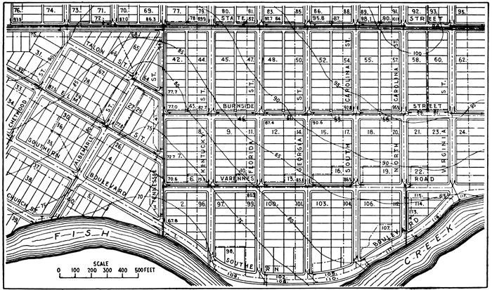 | 41. The Plan. 42. Preliminary Map. 43. Layout of the Separate System. 44. Location and Numbering of Manholes. 45. Drainage Areas. 46. Quantity of Sewage. 47. Surface Profile. 48. Slope and Diameter of Sewers. 49. The Sewer Profile. Design of a Storm-water Sewer System. 50. Planning the System. 51. Location of Street Inlets. 52. Drainage Areas. 53. Computation of Flood Flow by McMath Formula. 54. Computation of Flood Flow by Rational Method. | 78–98 |