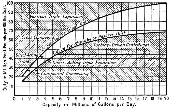 | ix68. Need. 69. Reliability. 70. Equipment. 71. The Building. 72. Capacity of Pumps. 73. Capacity of Receiving Well. 74. Types of Pumping Machinery. 75. Sizes and Descriptions of Pumps. 76. Definitions of Duties and Efficiency. 77. Details of Centrifugal Pumps. 78. Centrifugal Pump Characteristics. 79. Setting of Centrifugal Pumps. 80. Steam Pumps and Pumping Engines. 81. Steam Turbines. 82. Steam Boilers. 83. Air Ejectors. 84. Electric Motors. 85. Internal Combustion Engines. 86. Selection of Pumping Machinery. 87. Costs of Pumping Machinery. 88. Cost Comparisons of Different Designs. 89. Number and Capacity of Pumping Units. | 127–163 |